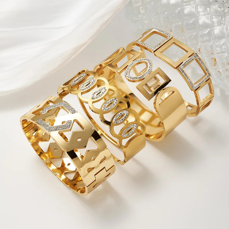 Hexagon & Geometric Open Bracelet | 18K Gold Plated Rhinestone & Clay Women’s Bangle | Modern Roman Style Jewelry