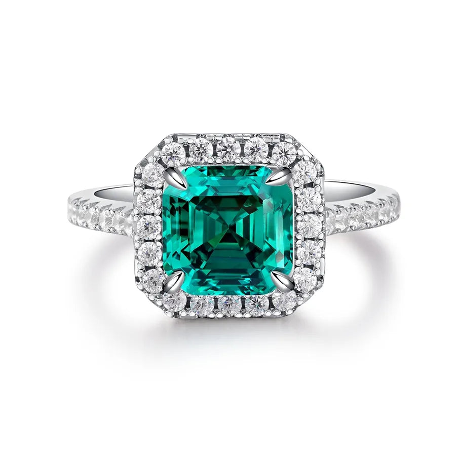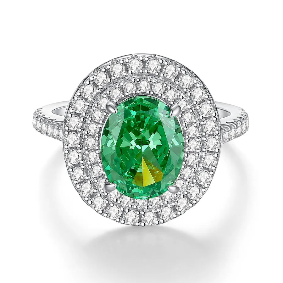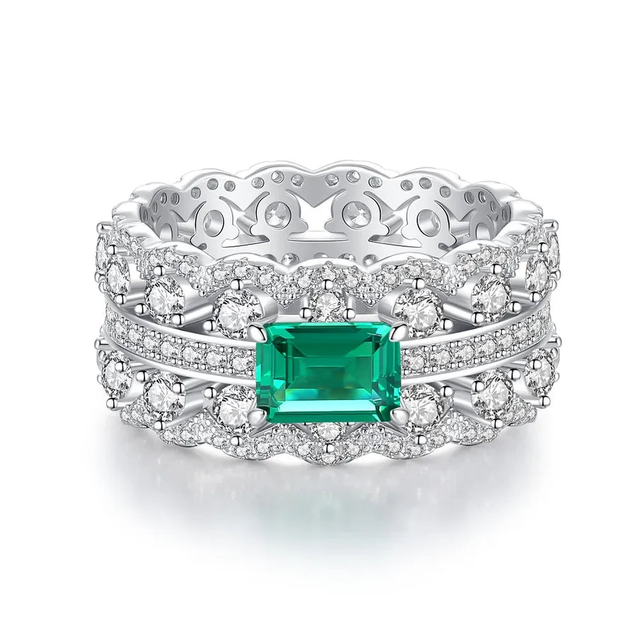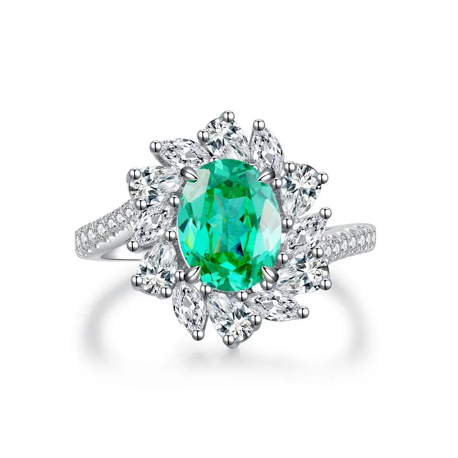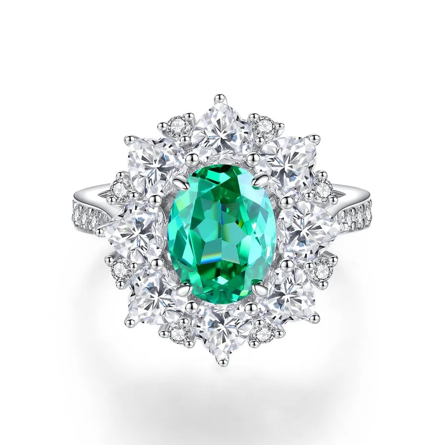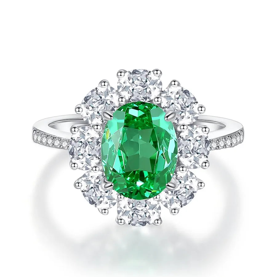 Square, Oval & Flower Inlay Ring | 925 Sterling Silver Women’s Ring | High Carbon Drill Banquet Jewelry
