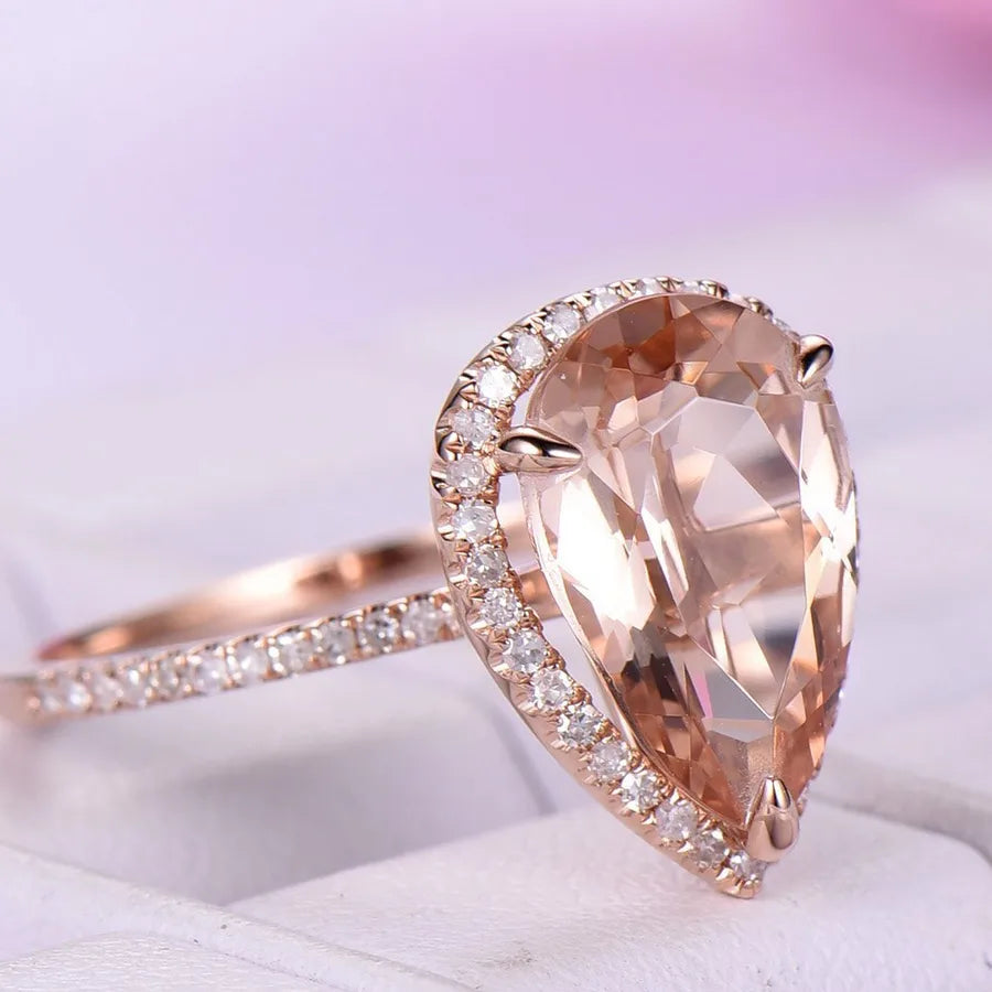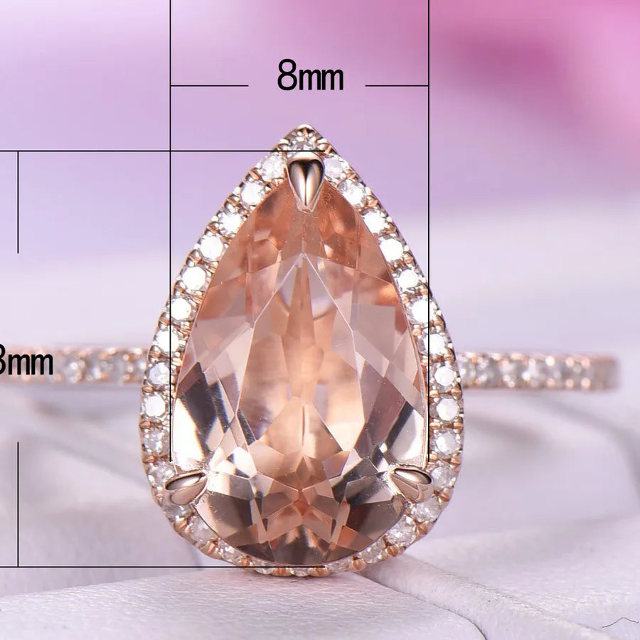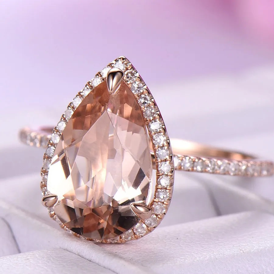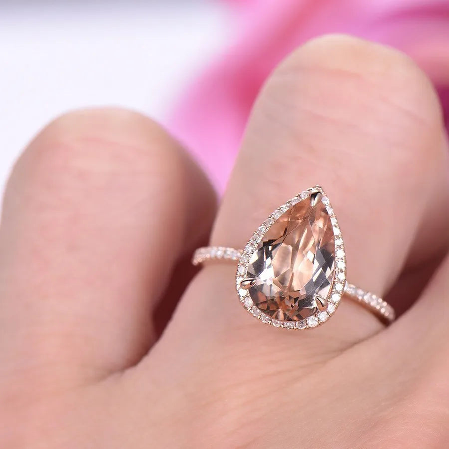 Rose Gold Water Droplets Zircon Inlay Ring | Fashion Copper Women’s Ring | Artificial Gemstone Festival Jewelry | Lightweight 4g Ring