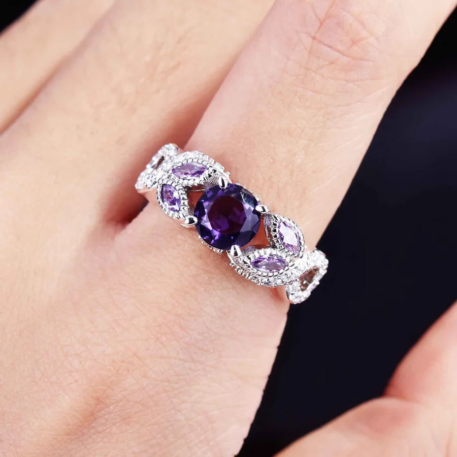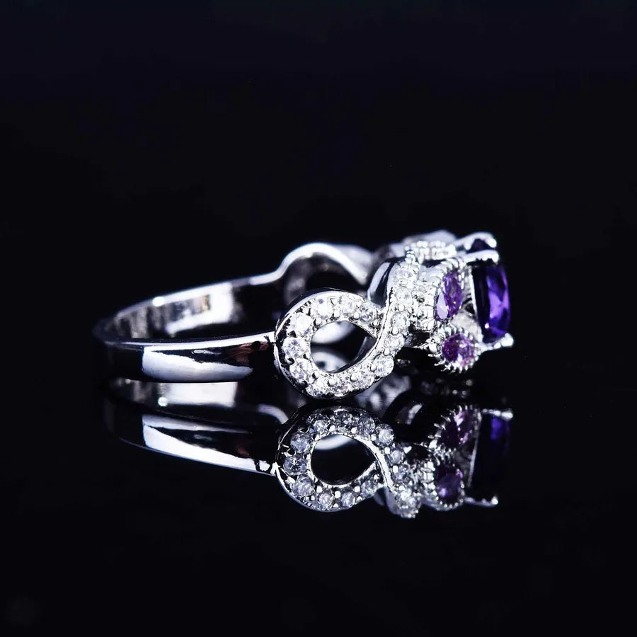 Purple Flower Ring for Women | Festival Jewelry | Retro Copper Ring with Gem Inlay