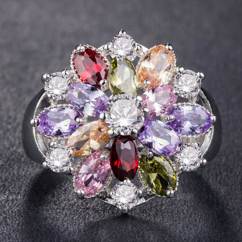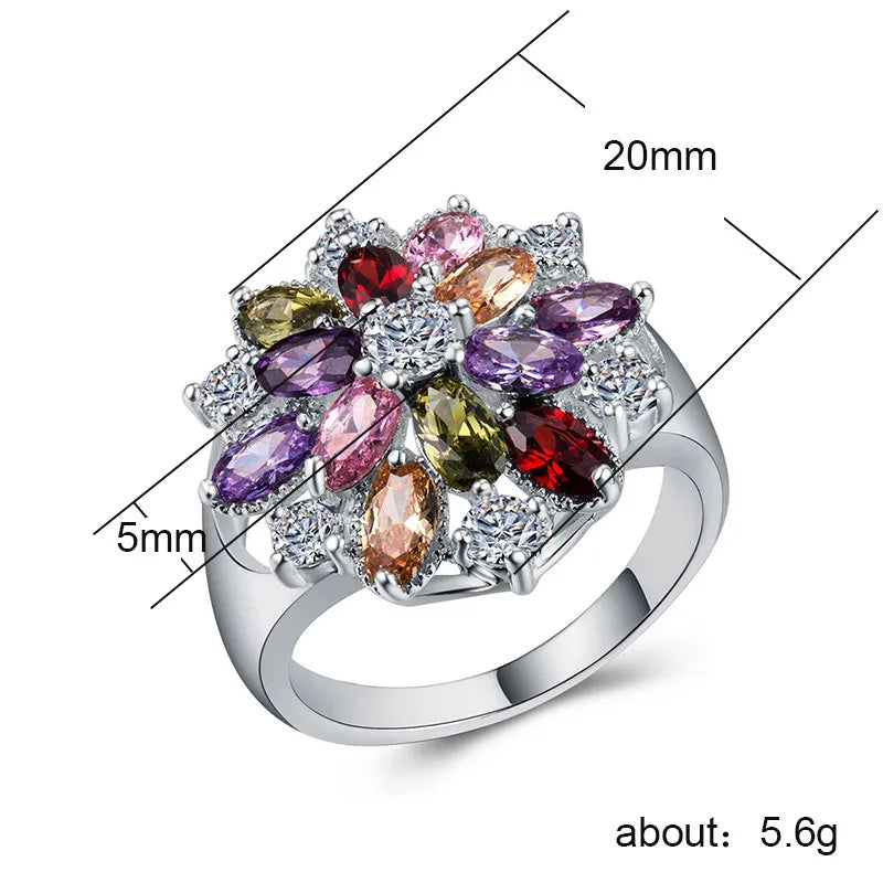 Flower Zircon Inlay Ring | Fashion Copper Women’s Ring | Artificial Gemstone Wedding Jewelry