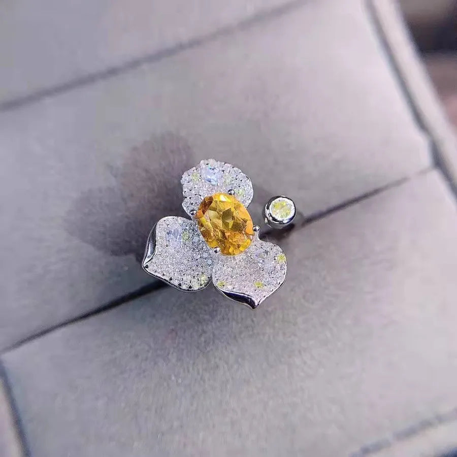 Trendy Copper Ring – Yellow Diamond Floral Three-Leaf Design for Women