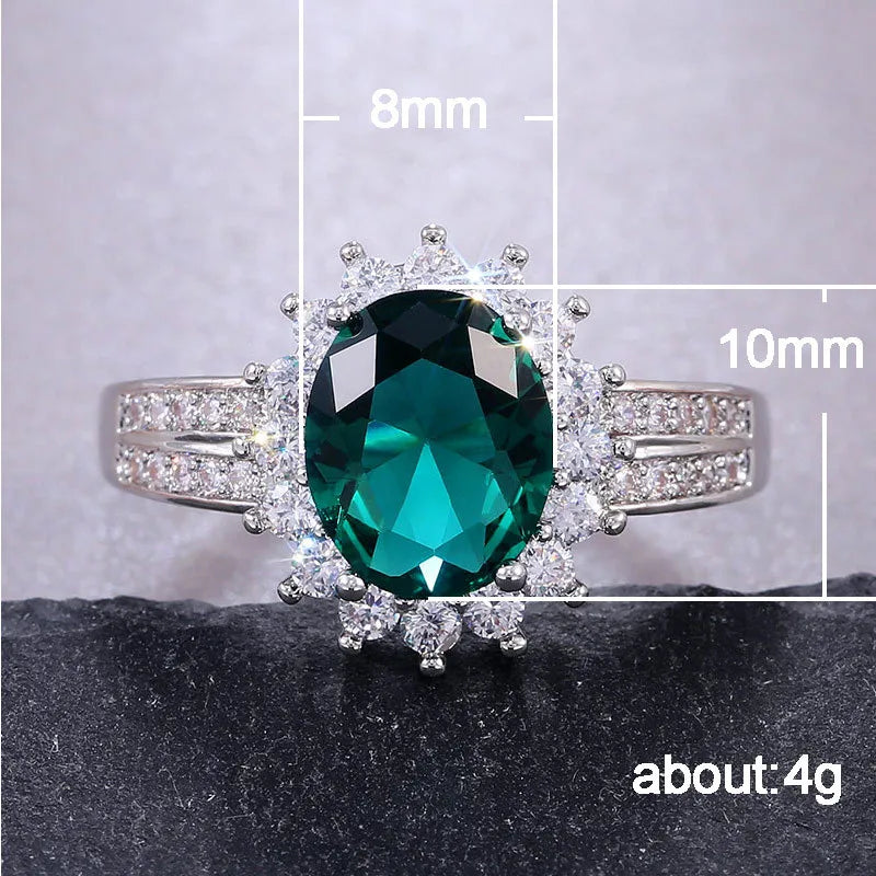 Green Geometric Zircon Inlay Ring | Streetwear Copper Women’s Ring | Artificial Gemstone Wedding Jewelry | Lightweight 4g Fashion Ring