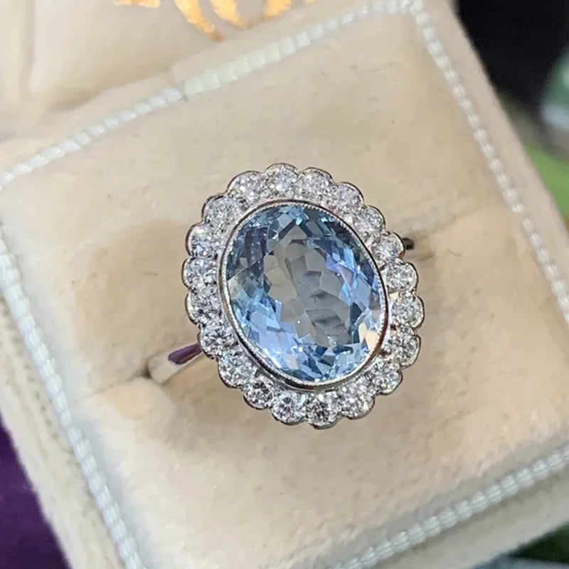 Blue Flower Zircon Inlay Ring | Fashion Copper Women’s Ring | Artificial Gemstone Festival Jewelry