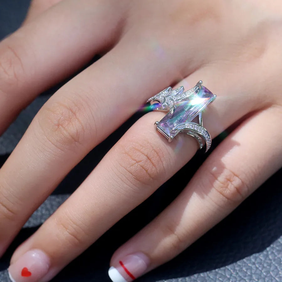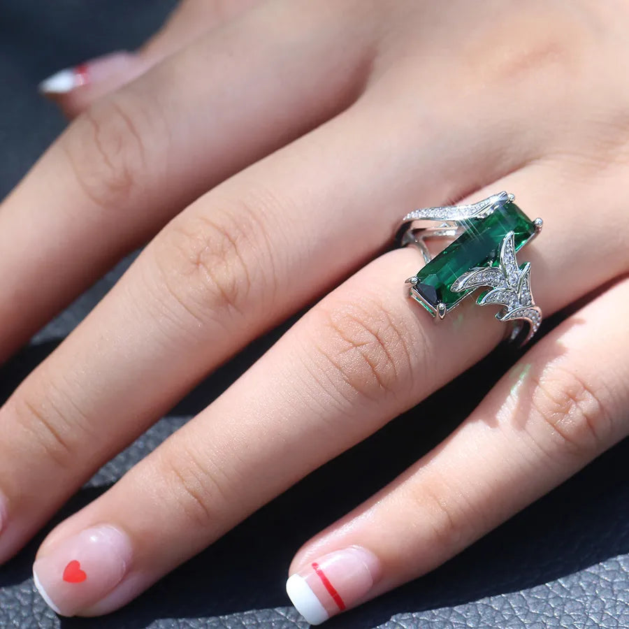 Green Geometric Zircon Inlay Ring | Fashion Copper Women’s Ring | Artificial Gemstone Wedding Jewelry