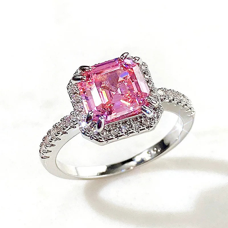 Pink Geometric Zircon Inlay Ring | Fashion Copper Women’s Ring | Artificial Gemstone Festival Jewelry