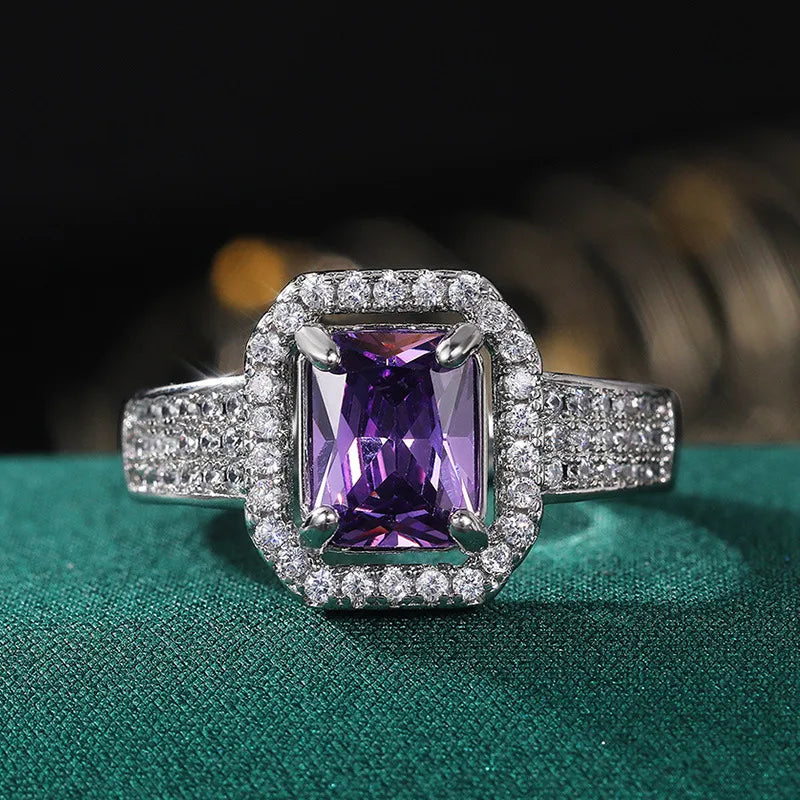 Purple Geometric Zircon Inlay Ring | Simple Style Copper Women’s Ring | Artificial Gemstone Birthday Jewelry | Lightweight 5g Ring