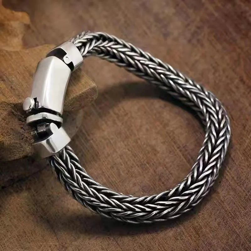 Handcrafted Bracelet For Men Bold Geometric Pattern Engraved Dragon Bone Thick Woven Style Personalized Fashion Jewelry