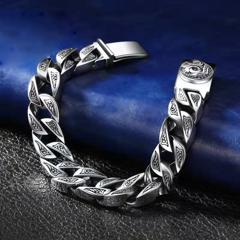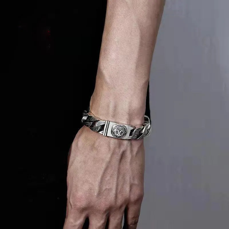 Retro Silver Plated Men's Bracelet Fashionable Motorcycle Friend Harley Totem Wrist Decorative Bracelet Dominant Rough