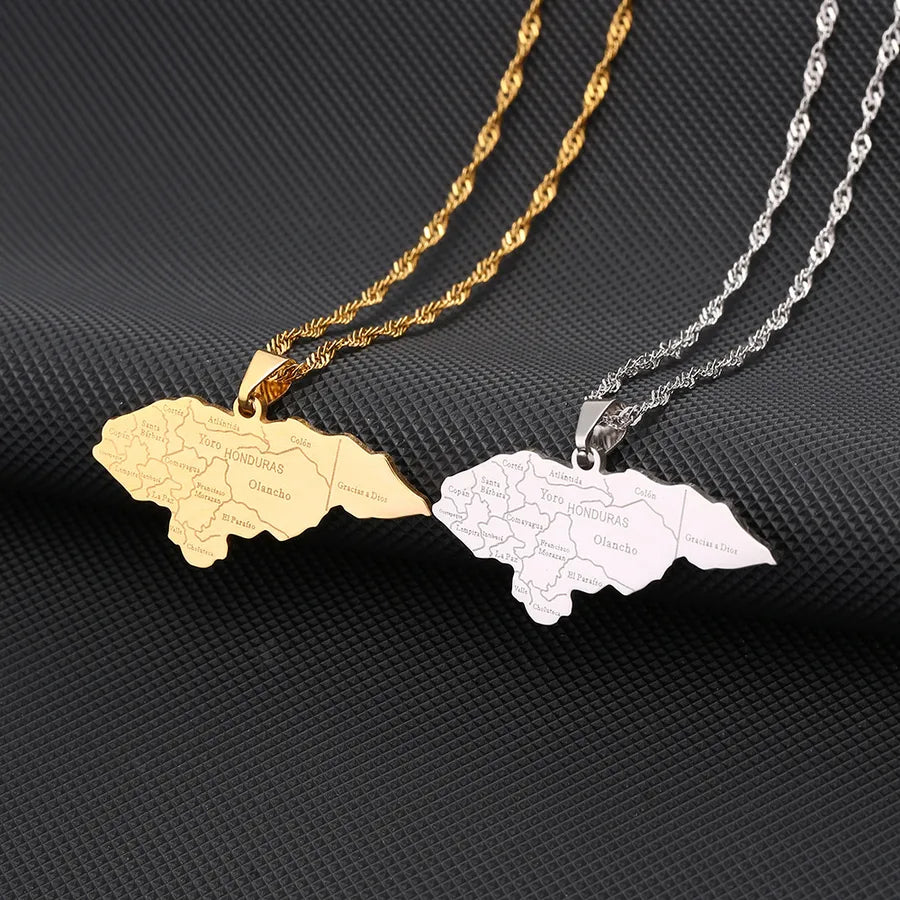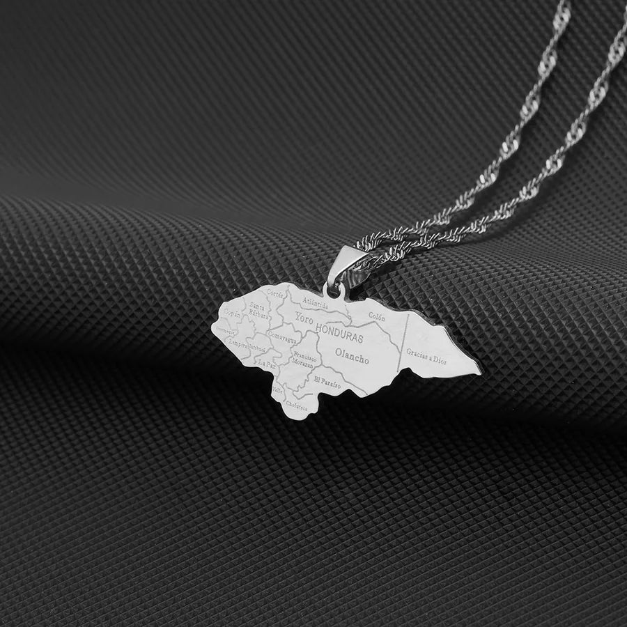Stainless Steel Honduras Map City Necklace Couple Ethnic Style Women's Autumn Winter Sweatshirt Chain Geometric Pattern Jewelry