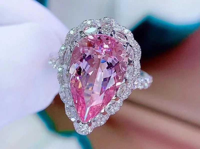 7.5 Carat Cherry Pink Morganite Ring – Drop-Shaped Adjustable Copper Jewelry