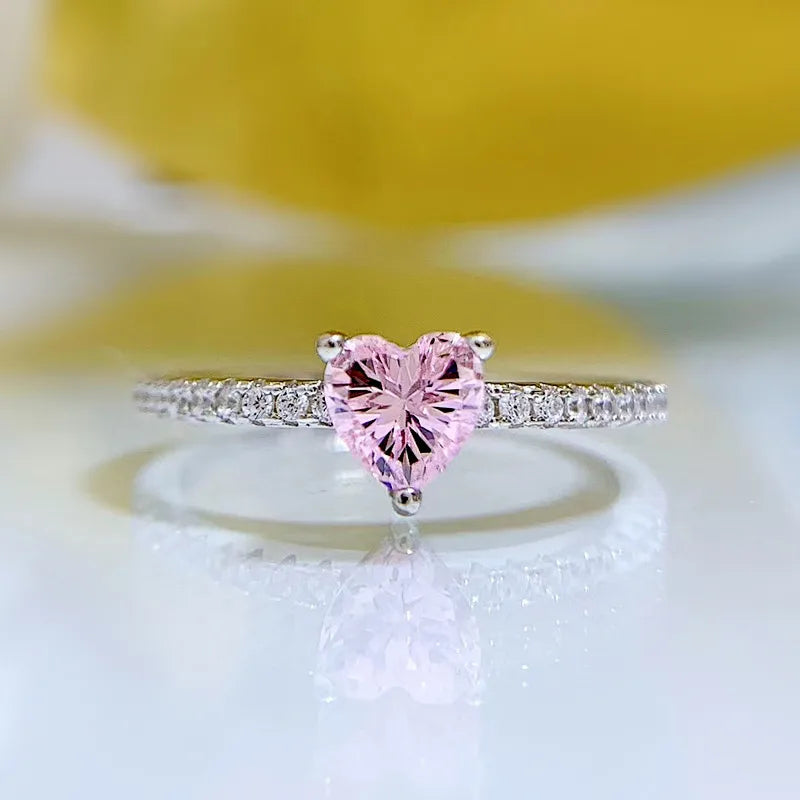 Heart Shape High Carbon Diamond Inlay Ring | Elegant Glam 925 Sterling Silver Women’s Ring