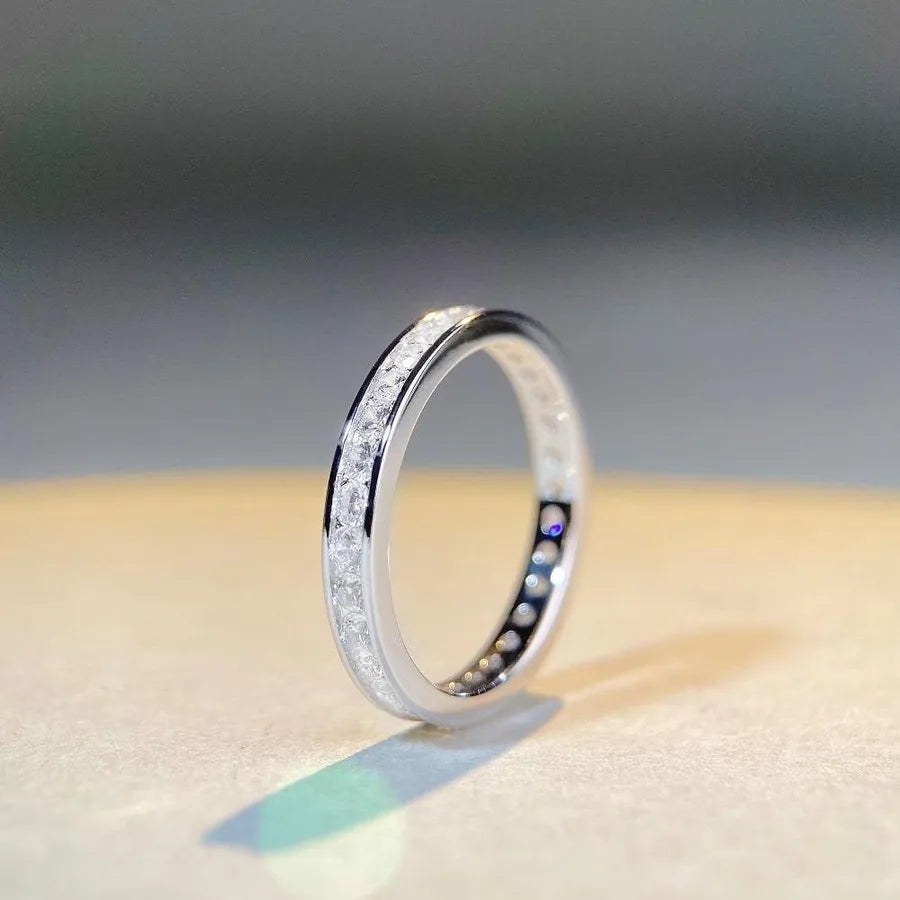 Solid Color Inlay Ring | 925 Sterling Silver Women’s Ring | High Carbon Diamond Daily Jewelry