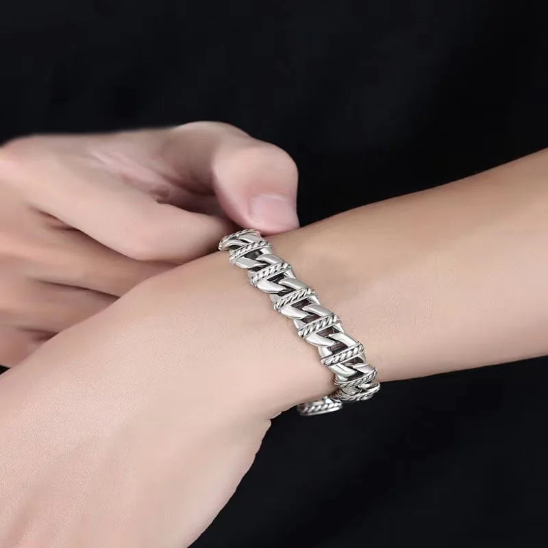 Cool Punk Style Heavy Work Pig Nose Bracelet Men's Minimalist Cold Tone Fashion Retro Hand Chain Diamond Pattern Copper Material