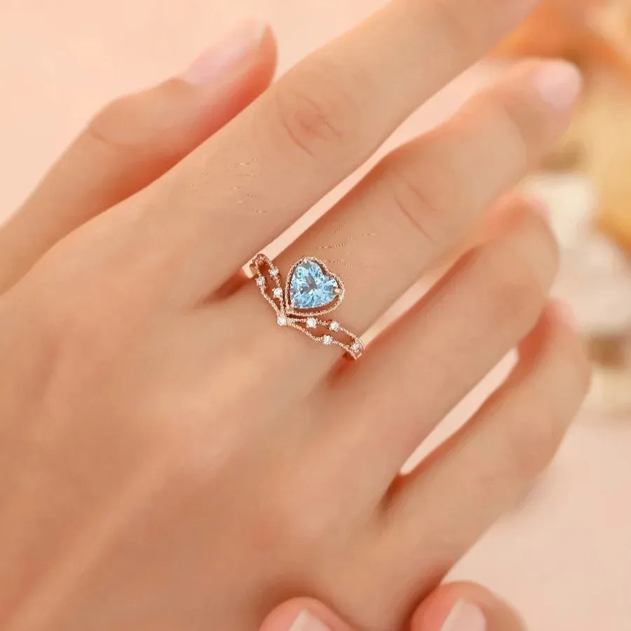 Celebrate weddings with this charming heart-shaped open ring, featuring sparkling inlay gemstones and zircon for a sweet and stylish look.