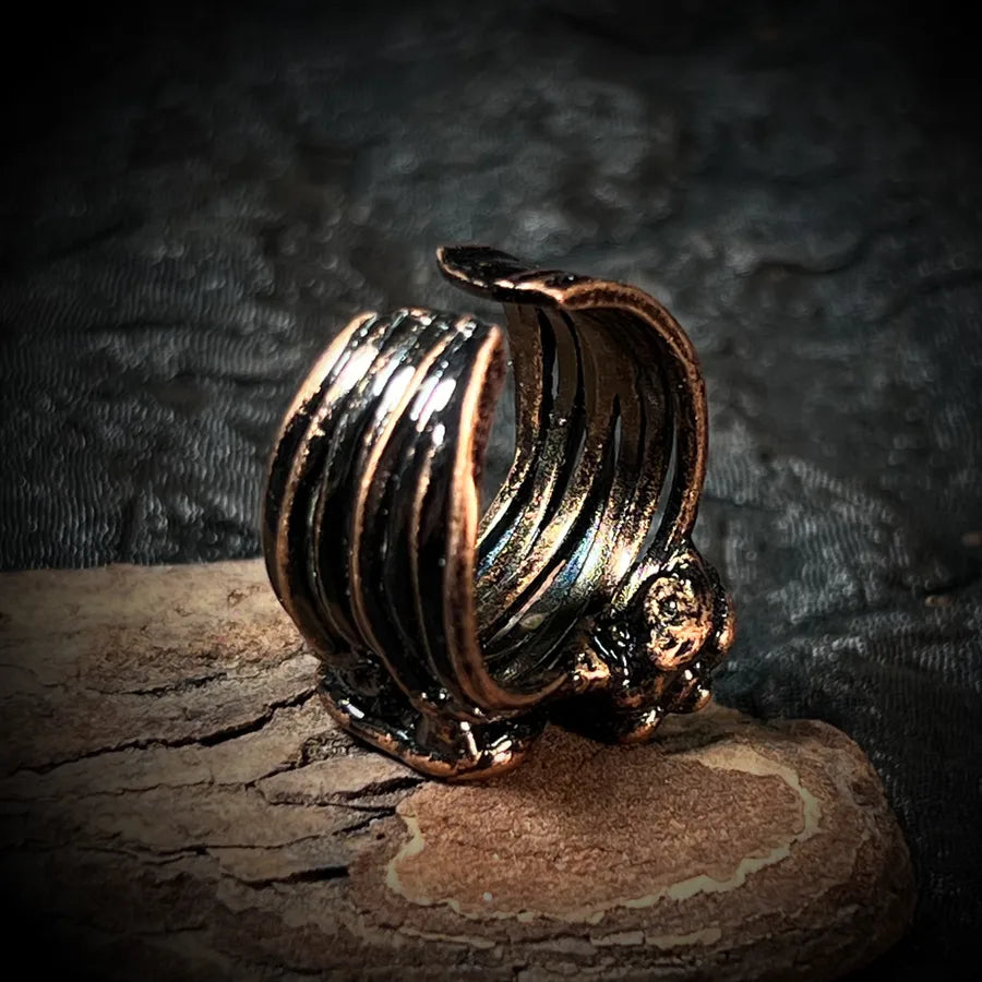 Make a striking statement with this adjustable geometric open ring featuring amethyst and ruby rough stones. Crafted with durable copper, this elegant retro unisex ring combines healing energy with style, perfect for casual or streetwear looks, and suitable for all seasons.