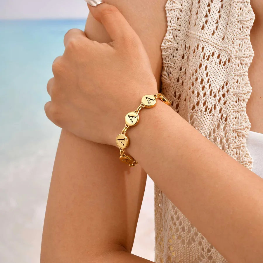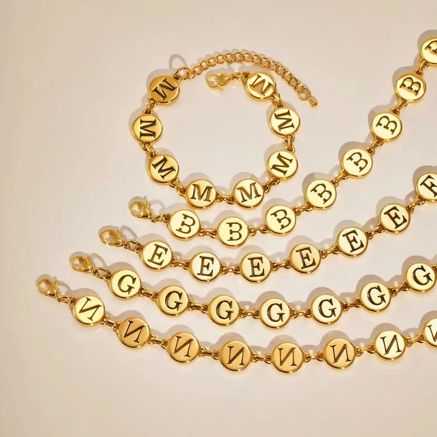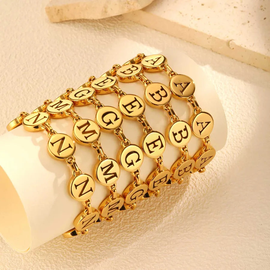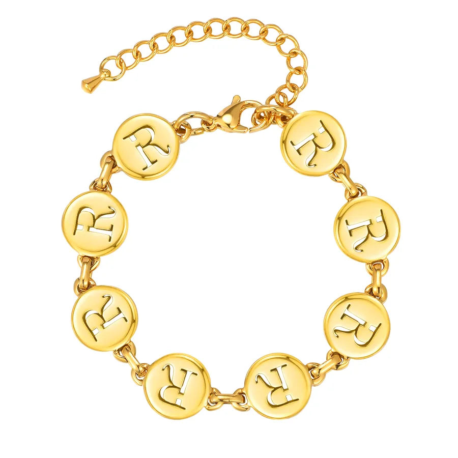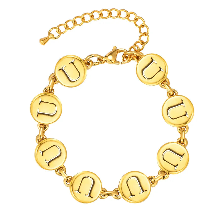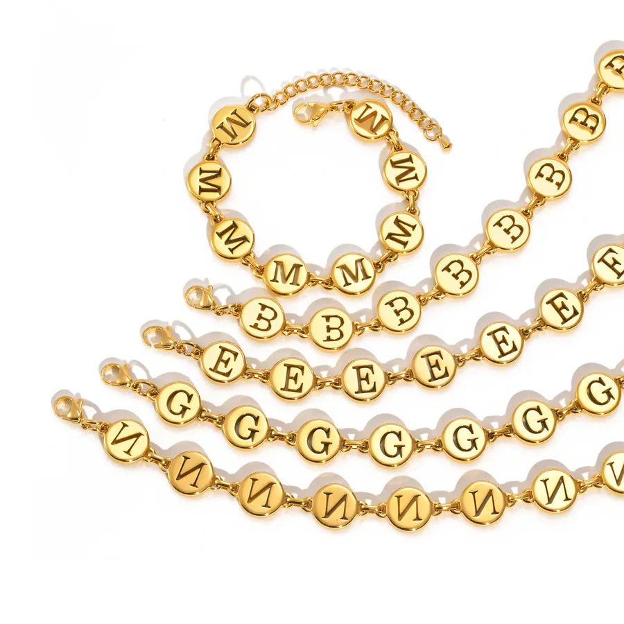 Ladies Fashion Stainless Steel Hollow 26 Letter Alphabet Round Pendant Bracelet Gold Color Casual Minimalist Style Jewelry