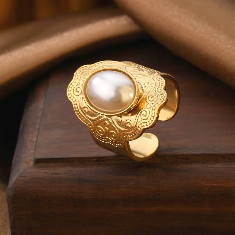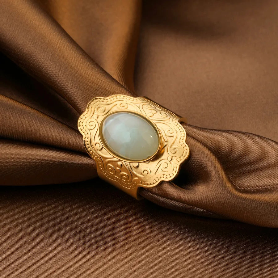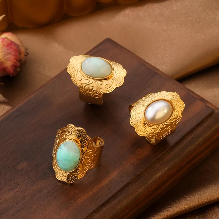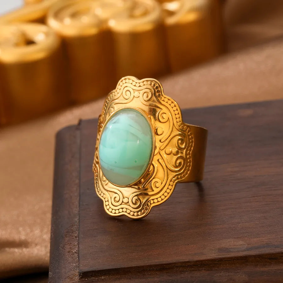 Luxurious Vintage Stainless Steel Ring Elegant Versatile Adjustable Gold Plated Oval Shape Fashionable For Men And Women