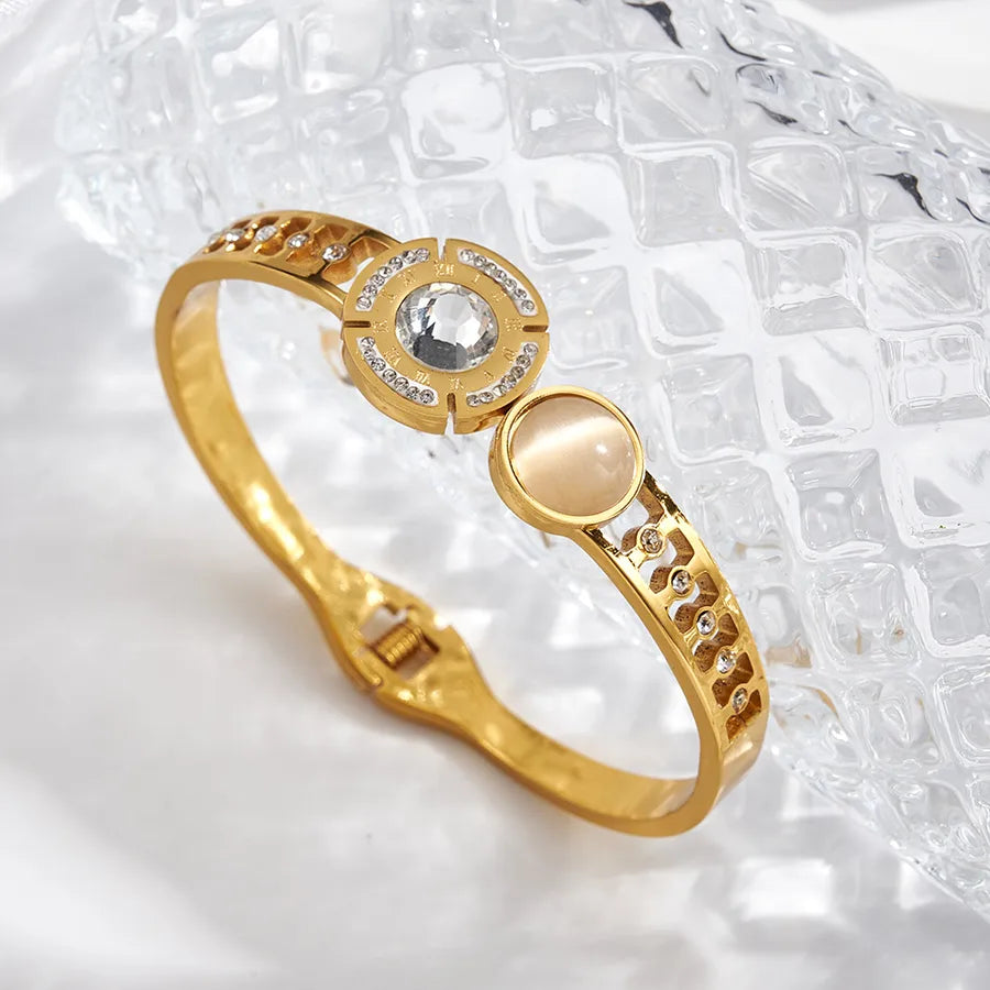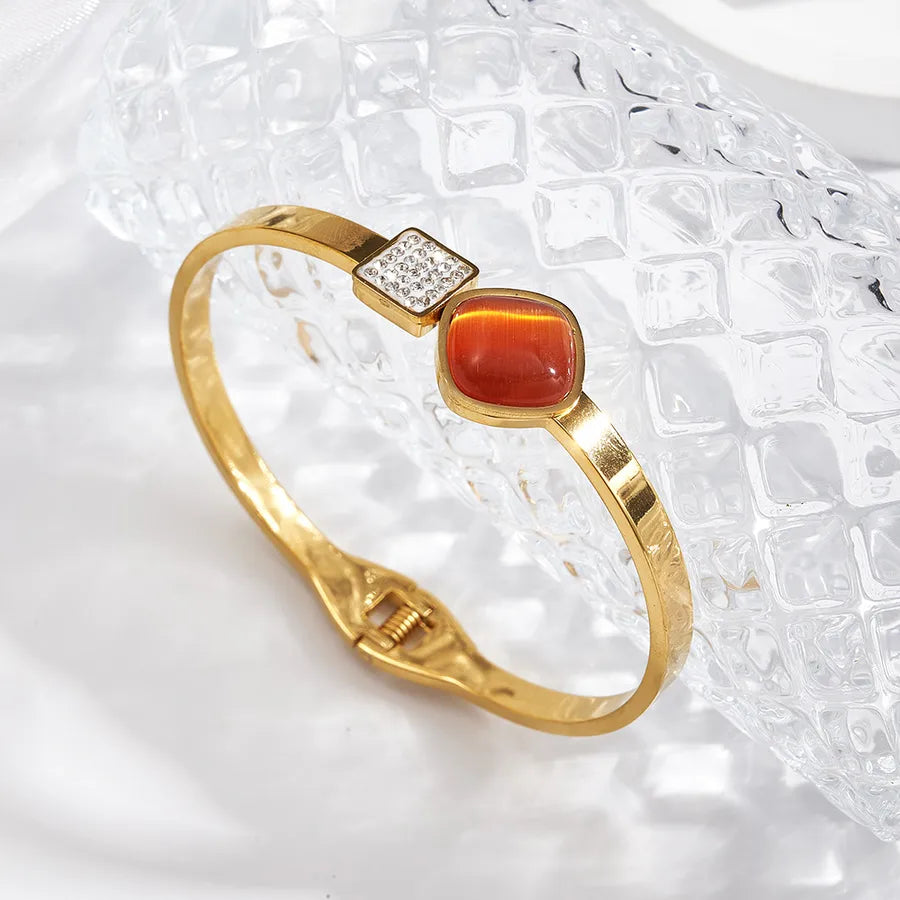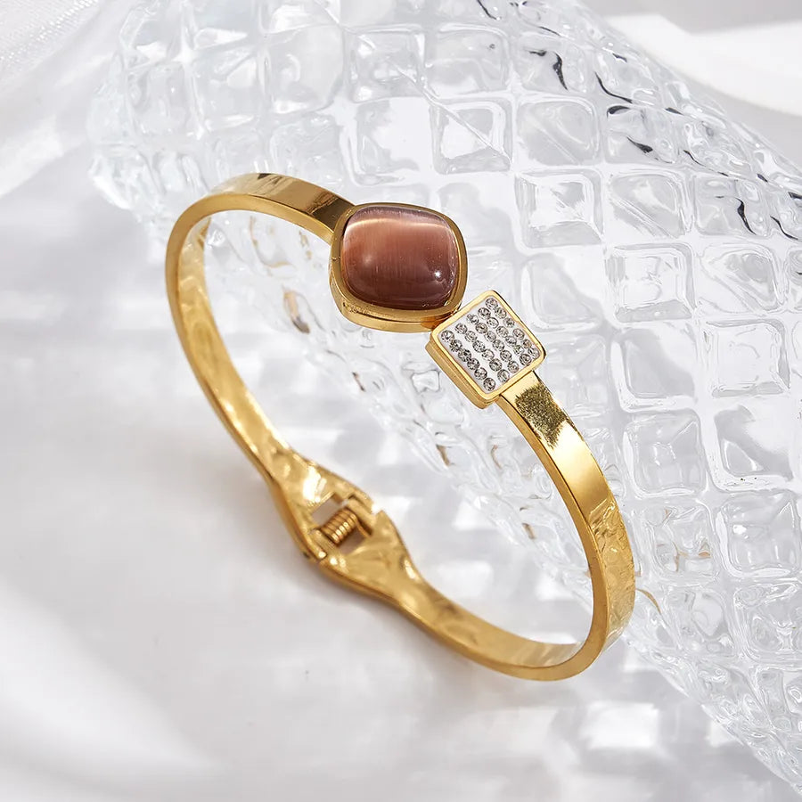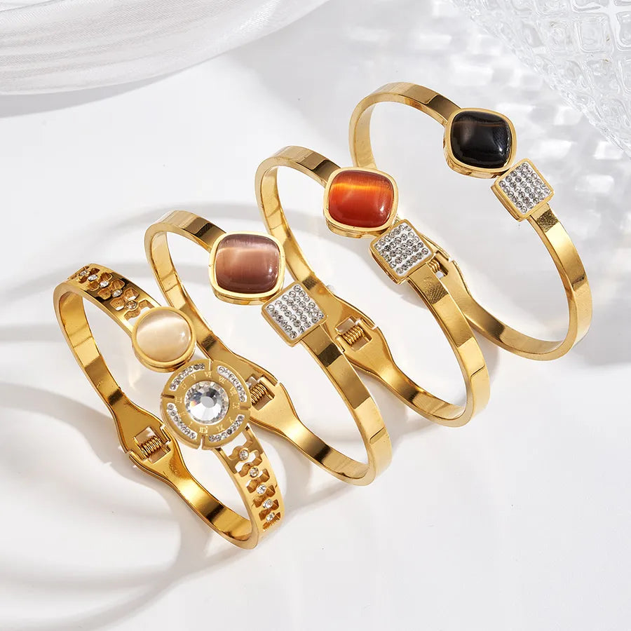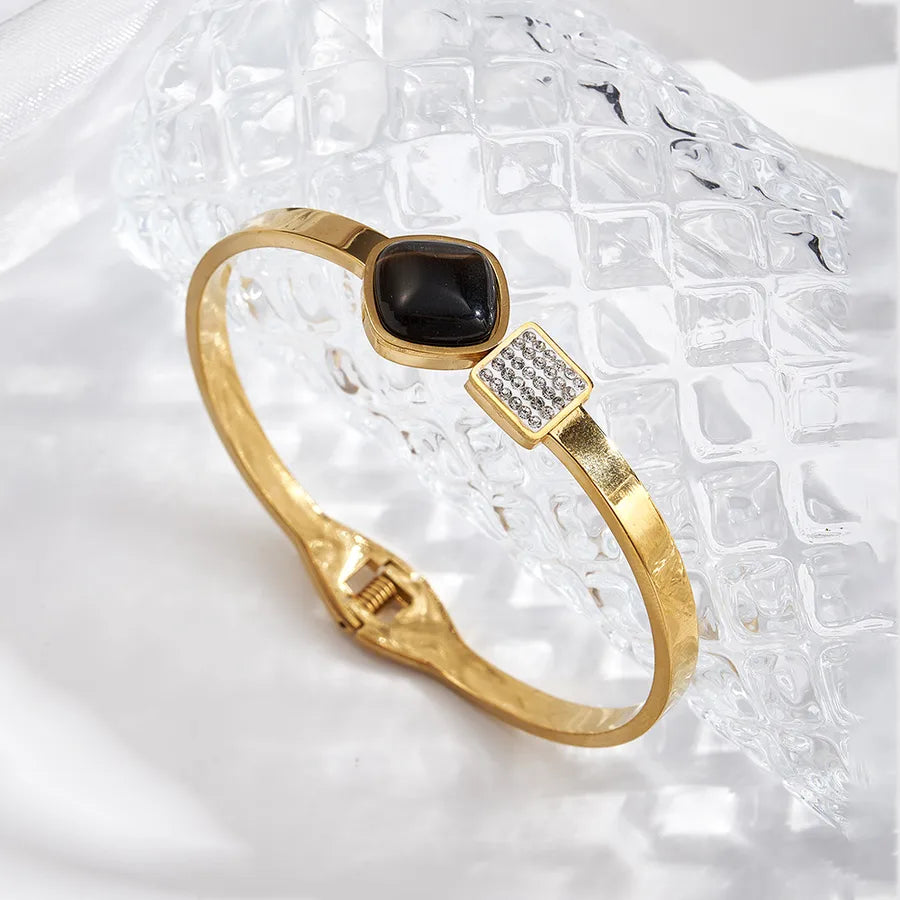PVD Coated 18K Gold Plated Geometric Round Square 304 Stainless Steel Casual Elegant Vacation Polishing Plating Open Bracelet Bangle