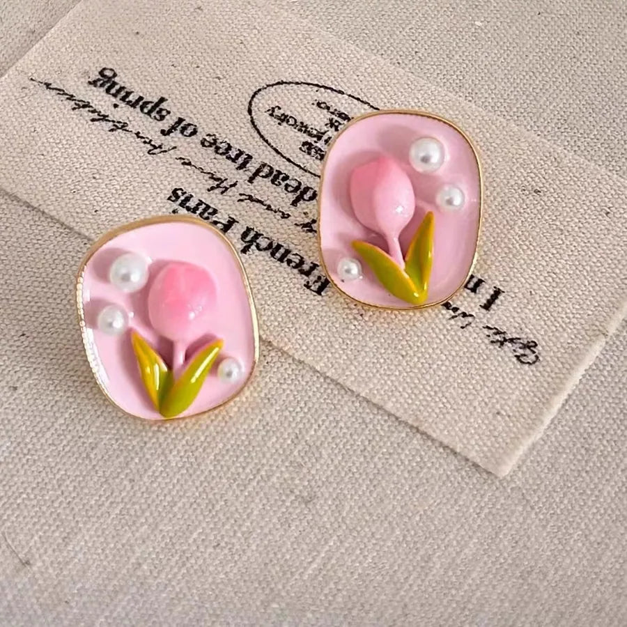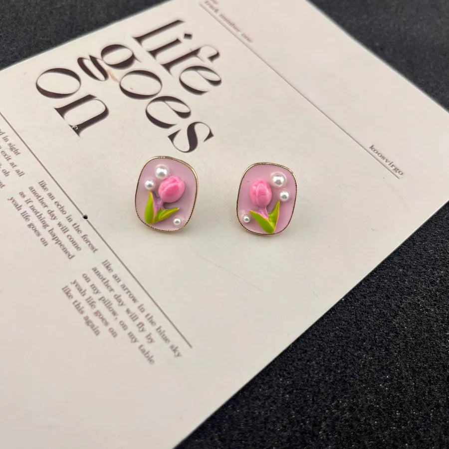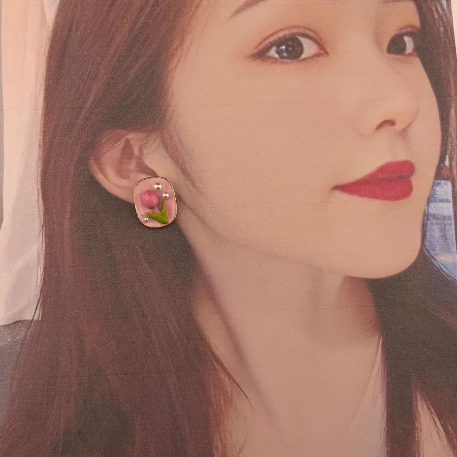 Tulip Flower Shaped Drip Oil Ear Studs No Piercing Required Vintage Style Alloy Earrings For Women Mosquito Coil Tray Clip-Ons